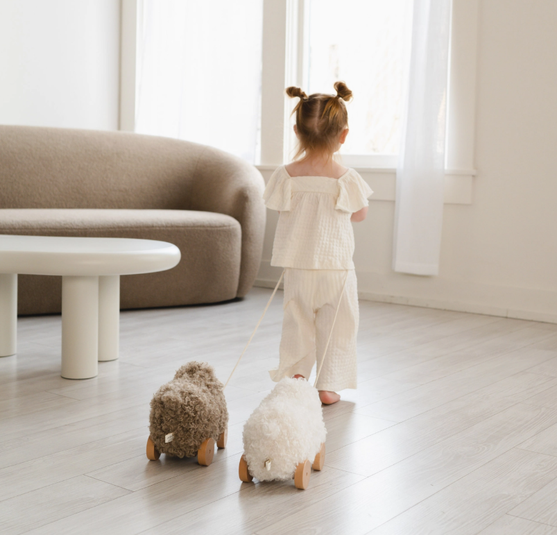 Meet Button, the softest and most adorable pull-along sheep, designed to be your toddler’s newest walking companion! Crafted with the fluffiest, high-quality materials and smooth wooden wheels, Button is the perfect blend of charm and functionality. This delightful toy is not just a friend but also a fantastic tool to support your little one’s developmental milestones.