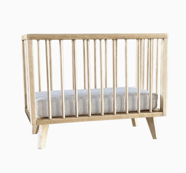 Dollhouse Nursery Crib + Mattress, Natural Wood