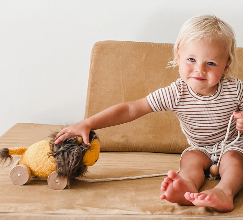 GRAUUUUU! Meet Leo, the softest and most adorable pull-along lion, designed to be your toddler’s newest walking companion! Crafted with the fluffiest, high-quality materials and smooth wooden wheels, Leo is the perfect blend of charm and functionality. This delightful toy is not just a friend but also a fantastic tool to support your little one’s developmental milestones.