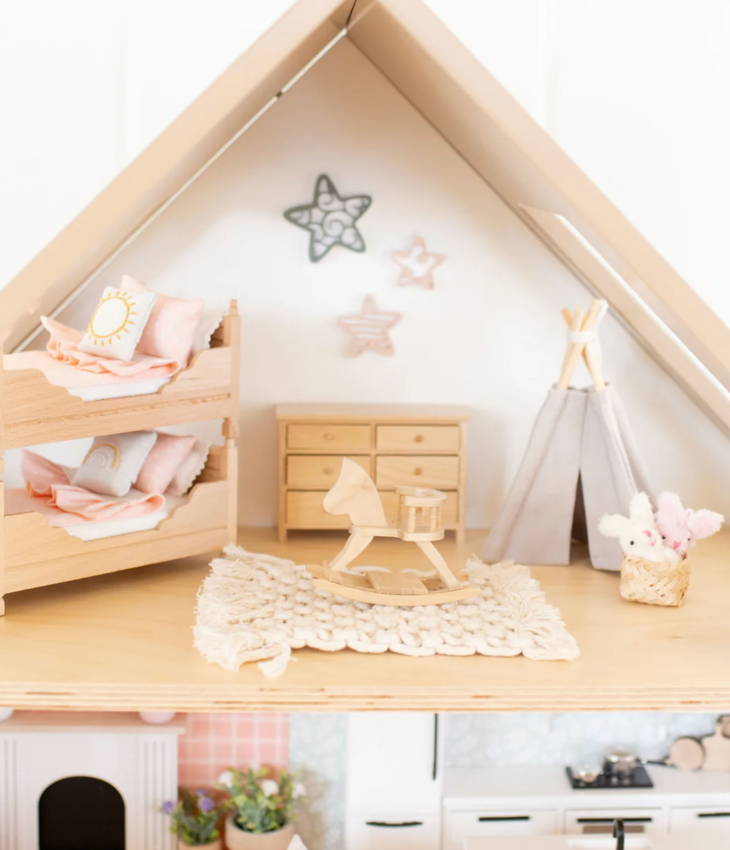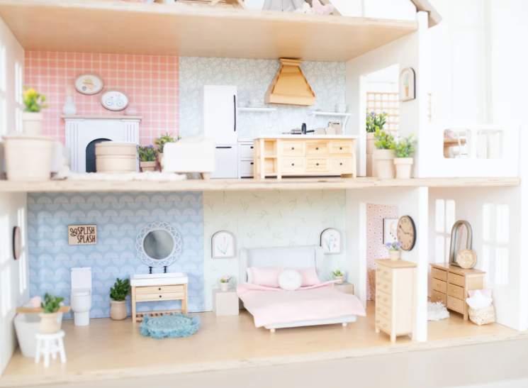 Crafted with only the finest materials, this dollhouse stands the test of time. The sturdy construction ensures durability, while the luxurious finishes add an air of sophistication to your miniature world. Style it with all your favorite Macy Mae pieces to make it an abode of your miniature dreams! SEE ALL OF OUR ADORABLE MACY MAE PIECES under MACY MAE