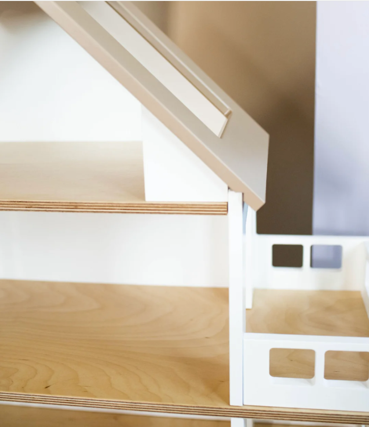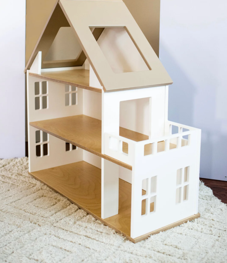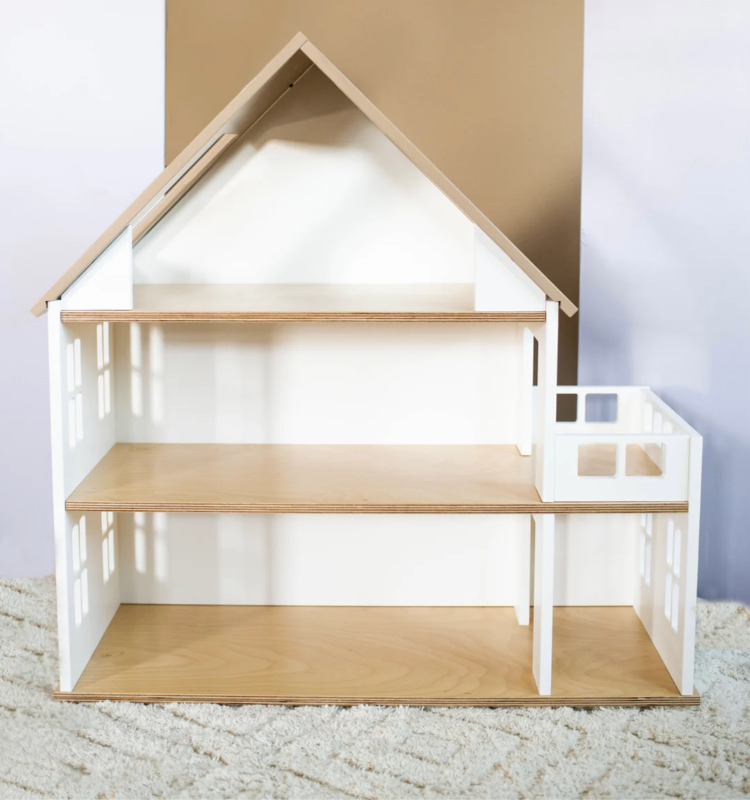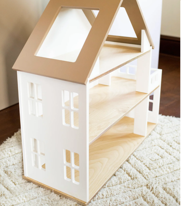 A true heirloom piece that will be enjoyed for generations! Our Oak Street Dollhouse is USA made in Albany, Minnesota with meticulous craftsmanship and designed by us with every detail in mind. This high-quality dollhouse is truly a stunner, and you'll love the butter smooth finish of the spray lacquer. All pieces are carefully inspected and sanded by hand. The floors are made of Baltic Birch plywood and clear coated to prevent scratches and marks.